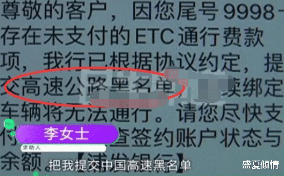 既然丈夫這么說了,李女士也就沒有多想,然后兩人就這樣開回家了??芍髱滋?,李女士就受到了一條短信,短信顯示,李女士那天停車費(fèi)用是3595元,因?yàn)槔钆康挠囝~不足,所以銀行先墊了。 看到這條短信的李女士,一時(shí)間懵了,根本不知道怎么回事。沒過多久,李女士手機(jī)又發(fā)過來一條短信,說是李女士又沒有支付的etc通行費(fèi),所以李女士被提交到高速路黑名單里了。