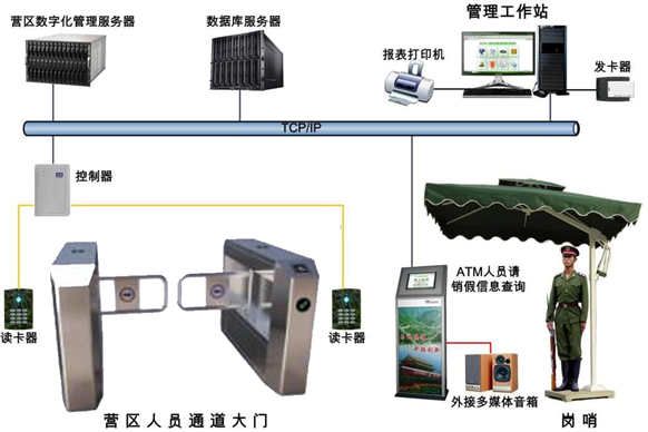 該系統(tǒng)射頻感應卡或人臉信息作為信息載體,充分利用已有資源,保護原有投資,增加相應識別設備、顯示設備和相應管理軟件,不改變現(xiàn)用的請銷假流程,完成士兵的請銷假管理。
